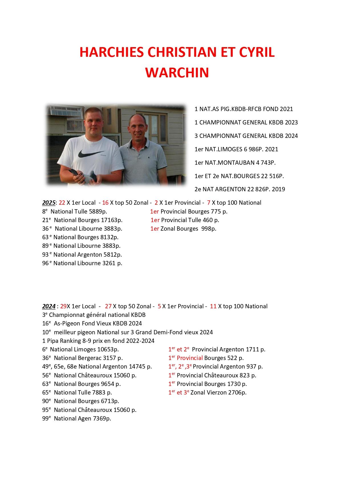 | N° ring | 2025: 22 X 1er Local - 16 X top 50 Zonal - 2 X 1er Provincial - 7 X top 100 National-8e National Tulle 5889p.-1er Provincial Bourges 775 p.-21e National Bourges 17163p.-1er Provincial Tulle 460p.-36e National Libourne 3883p.-1er Zonal Bourges 998p.-. |