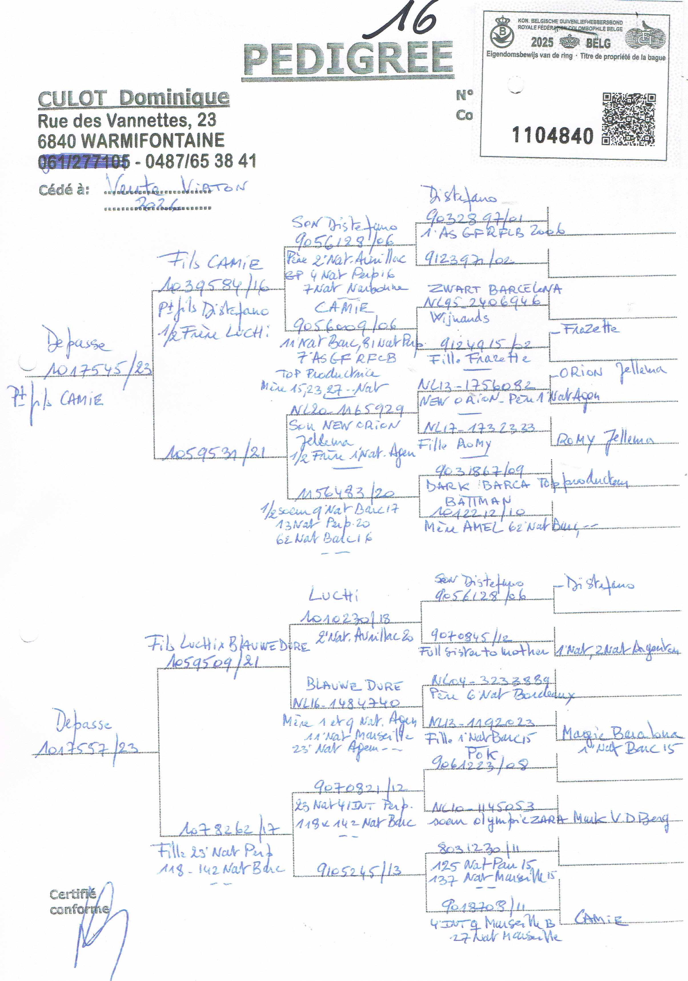 Culot Dominique – 1 pigeon présent – Warmifontaine Pigeon : 1104840 / 25 100 % Depasse St (Union Colombophile Virton-St Mard) Back to the list