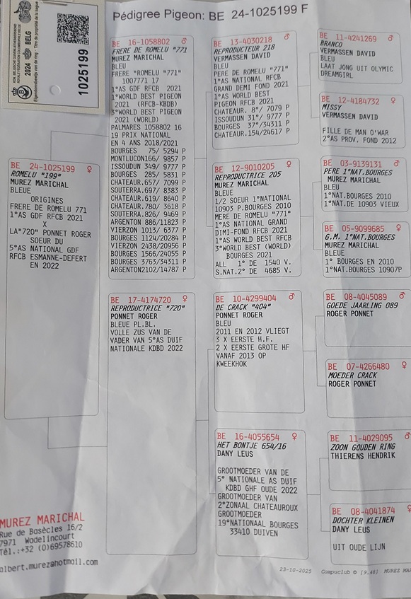 Muret Maréchal (Wadelincourt) pigeon (Essor Froidmont) Back to the list