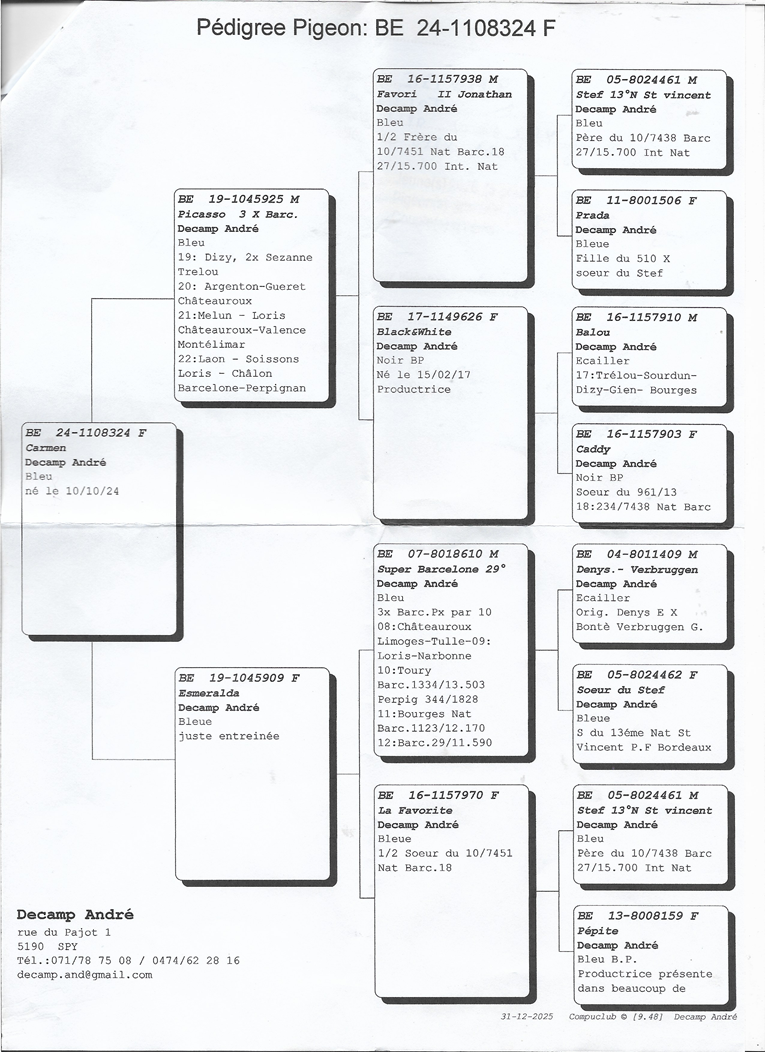 DECAMP André – Spy – Femelle adulte présent en salle (Voir pédigrée en annexe) (Hirondelle de Meux) Back to the list