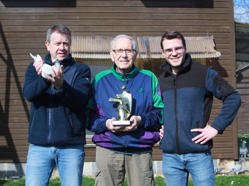 Si je devais résumer les prestations de la colonie Bodson Jean, Franck & Nathan ce serait "REGULARITE" chaque année dans le TOP3 des podiums nationaux. 2025 n'a pas dérogé à la règle!!!La saison 2025 aura elle aussi été fructueuse puisque le tandem se classe 3e Champion National Demi-Fond RFCB, voyant ainsi la colonie monter sur le podium des championnats nationaux de la RFCB pour la troisième année consécutive, une performance tout bonnement exceptionnelle!Les résultats de la famille Bodson sont vraiment impressionnants en vitesse et en petit demi-fond. Leur colonie repose sur des pigeons puissants, descendants principalement de leur pigeon de base, le Tardif. Cette base, exploitée depuis de nombreuses années, leur a permis d'élever des pigeons du calibre du Golden Eye Kannibaal mais nul doute que d'autres pigeons de sa trempe pourraient sortir du colombier d'élevage des Bodson.Les titres d'as pigeons et de champion national ne pourraient en effet être que le début d'une longue histoire...Champion EPR-Liège Namur Luxembourg demi-fond Vieux & yearlings 20252e Kampioen National KBDB klein Halve fond 2025 oude & jaarse / Champion National RFCB petit demi-fond vieux & yearlings 20251er As pigeon demi-fond vieux EPR-Liège Namur Luxembourg 20251er As pigeon demi-fond pigeonneaux EPR-Liège Namur Luxembourg 20256e & 16e As duif National KBDB klein halve fond oude 2025 / As pigeon national RFCB peit demi-fond vieux 20253e Champion Général LCB Vieux-Yearlings Wallonie 20254e Champion Demi-fond LCB Vieux-Yearlings Wallonie 20255e, 7e As Pigeon LCB Demi-fond Vieux-Yearlings Wallonie 202512e Champion National Général LCB Vieux-Yearlings 2025...1st Kampioen National KBDB Snelheid Oude & Jaarlingen - Champion National RFCB Vitesse Vieux & Yearlings 20241er As-duif National KBDB Snelheid Oude - As-pigeon National RFCB Vitesse Vieux 2024Champion National RFCB Petit Demi-Fond Vieux & Yearlings 2023Champion LCB Vitesse vieux/yearlings Wallonie 2024https://www.pipa.be/fr/articles/jean-franck-nathan-bodson-heure-le-romain-be-1er-champion-nat-vitesse-rfcb-2024-avec-leEn 2023 : https://www.herbots.be/fr/article/jean-franck-et-nathan-bodson-de-heure-leChampion Général Wallonie Vieux & Yearlings LCB 2023/ 2e Algemeen klassement Walse oude/jaarse LCB 2023