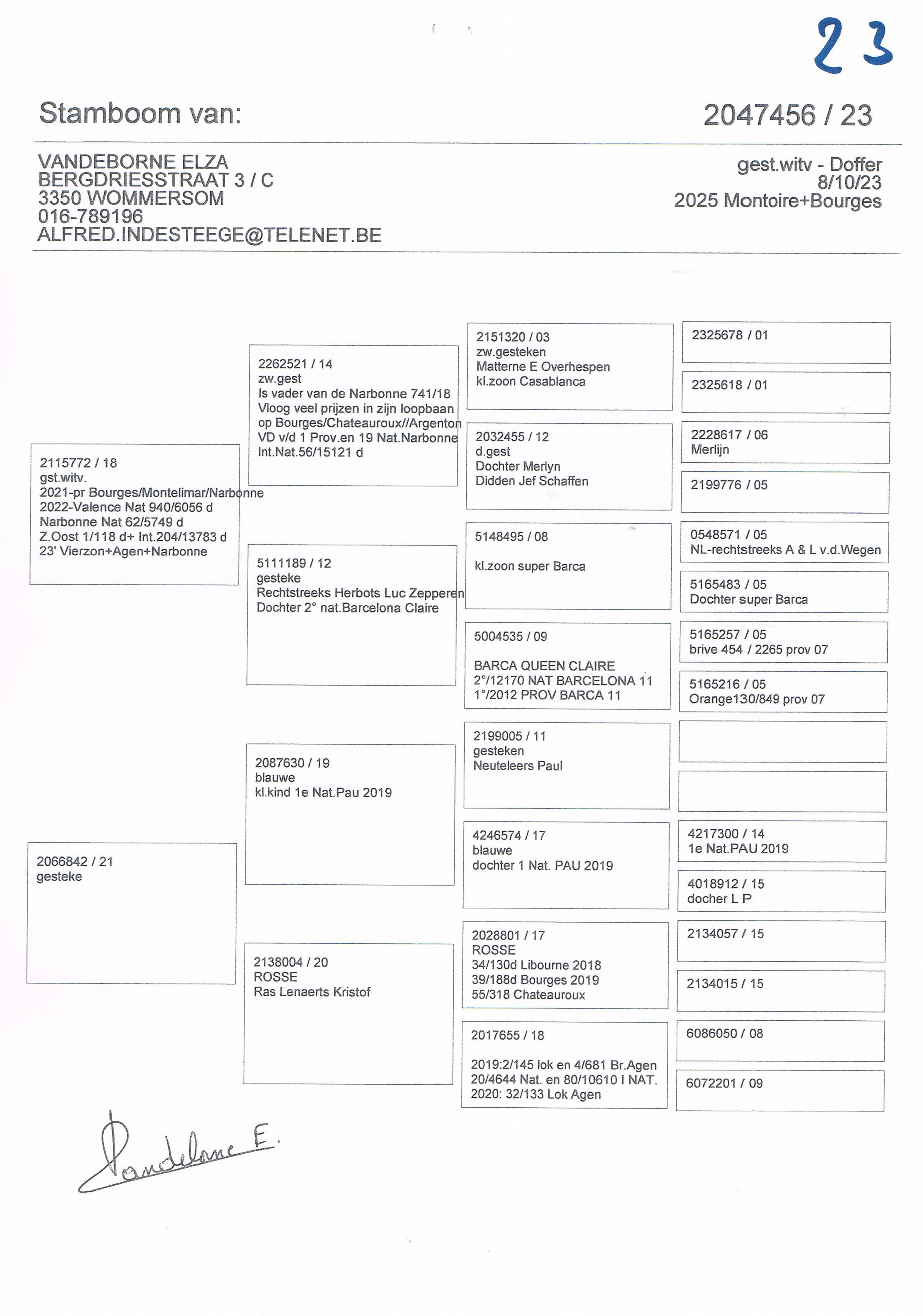 Vandeborne Liza 7456 (Indépendante de Liège (Vandeborne Elza)) Retour à la liste