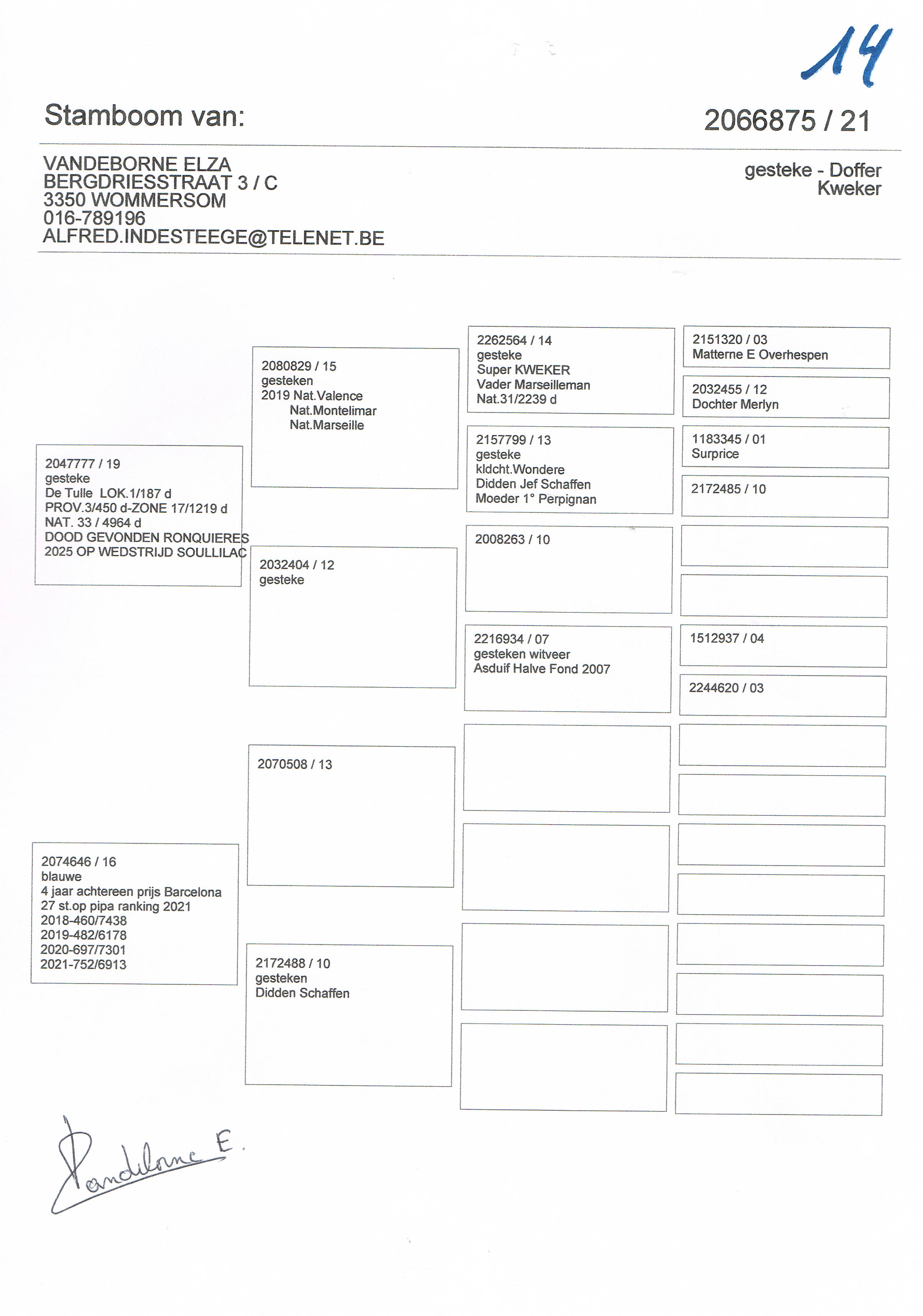 Vandeborne Liza 6875 (Indépendante de Liège (Vandeborne Elza)) Retour à la liste