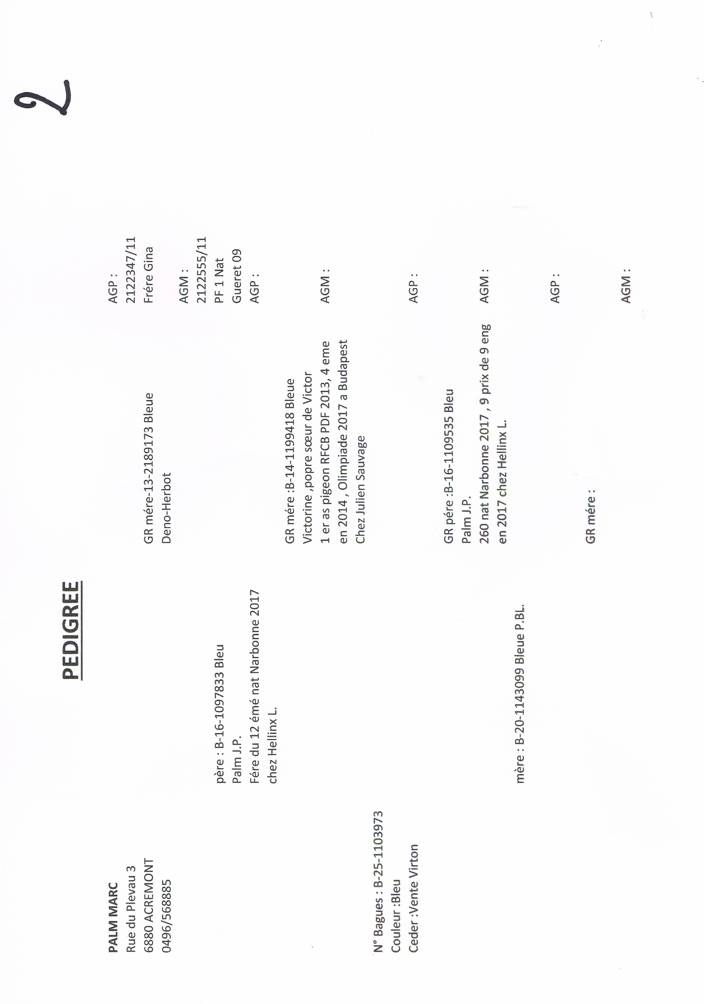 Palm Marc – 1 pigeon présent (Union Colombophile Virton-St Mard) Retour à la liste