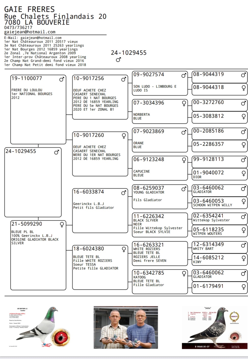 Gaie Frère ( La Bouverie) pigeon mâle 2025 (Essor Froidmont) Retour à la liste