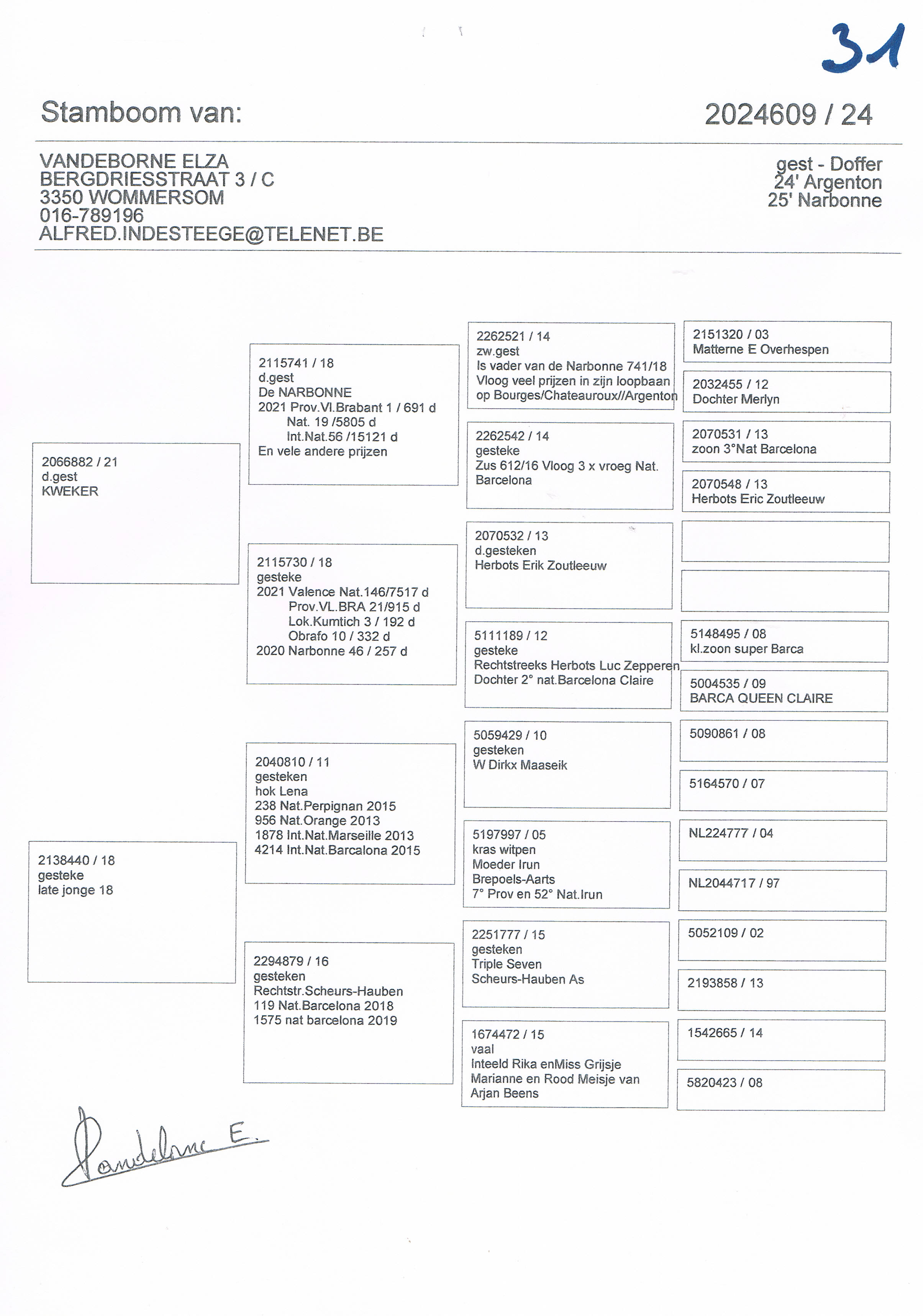 Vandeborne Liza 4609 (Indépendante de Liège (Vandeborne Elza)) Retour à la liste