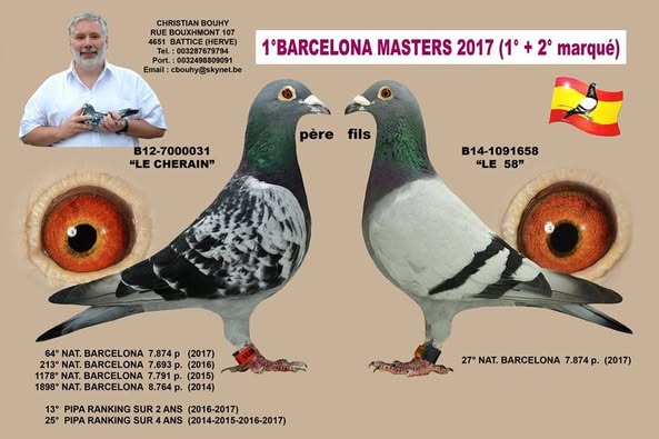 Christian joue principalement le grand fond avec une attention plus particulière à Barcelone où il a déjà remporté bon nombre de prix et le titre de Barcelona Master, sans oublier la 2e place aux Championnat National RFCB Grand fond yearlings en 2022!!!Christian engage peu de pigeons sur les quelques concours joués mais avec un haut % de réussite en 2025 comme -1 sur 3 Limoges I-3 sur 6 International Femelles Barcelone-1 sur 2 Libourne Yearlings-1 sur 2 PerpignanExtrait de la saison 20256e Champion Grand Fond CPE 20254e Zone Wallonne Agen Vieux 2025 (1/3)