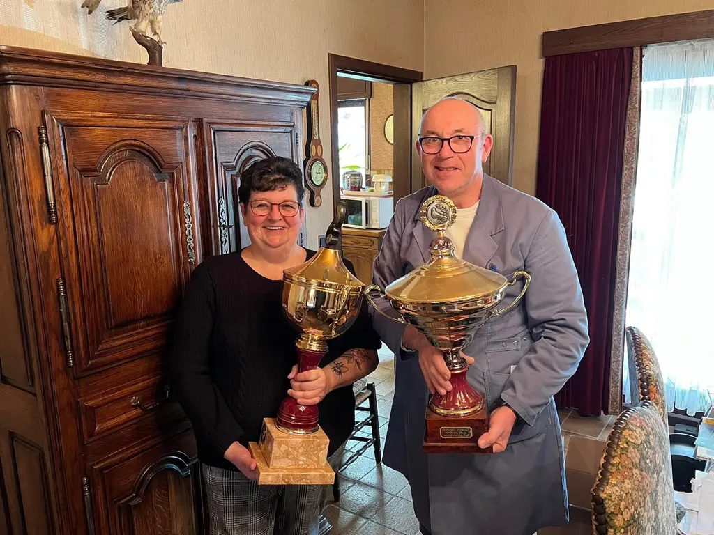 Sonia et Danny Van der Maelen font partie des meilleurs colombophiles du Denderstreek depuis des décennies. Des prix hebdomadaires sur toutes les distances et dans toutes les catégories ... c'est ainsi que l'on peut caractériser le pigeonnier Van der Maelen. Il doit être plus qu'agréable de posséder des pigeons d'une telle classe.8e As Pigeon Provincial Grand Demi-Fond Vieux 2025 / Asduif Provincial Zware Halve Fond Oude8e Champion Grand Demi Fond aux 2pp Vieux FVOV-OVV 2025 / Kampioen FVOV-OVV Zware halve fond oude duiven 1e & 2e afgegeven 20252e, 12e, 14e, 16e, 17e, … National Zone Bourges VI Vieux 20256e, 11e, 22e, 59e, 63e, 79e, … Provincial Bourges VI 2.633 J2025 (31/73)7e, … National Zone Argenton IV Vieux 20258e, 71e, … Provincial Argenton I 3.135 Yearlings 20258e, 76e, … National Zone Bourges II 2.378 Yearlings 202512e, 15e, 25e, 49e, 53e, 66e, 88e, 89e, 91e, … National Zone Bourges VI 1.691 J202513e, … National Zone Bourges III 1.000 Vieux 2025 (4/5)14e, 33e, … Provincial Bourges VI Vieux 202514e, … Provincial Bourges II 3.544 Yearlings 2025 (15/30)20e, … Provincial Bourges III 1.494 Vieux 2025 (4/5)20e, … Provincial Argenton IV Vieux 202525e, … National Zone Bourges II 1.824 Vieux 2025 (4/7)27e, … National Zone Argenton II Vieux 2025 (4/4)29e, 83e, … National Zone Bourges IV 1.016 Yearlings 202534e, … Provincial Argenton II 1.026 Vieux 2025 (4/4)35e, … Provincial Bourges II 3.005 Vieux 2025 (4/7)39e, … Provincial Bourges IV 1.673 Yearlings 202556e, 59e, 63e, … National Zone Argenton II Yearlings 202577e, … Provincial Bourges I 4.020 Vieux 2025 (4/8)87e, 97e, … Provincial Argenton II 1.415 Yearlings 2025 (6/12)85e, … National Zone Bourges I 2.538 Vieux 202590e, … National Argenton IV 2.049 Vieux 2025Egalement-6 sur 8 Argenton I Vieux-2 sur 2 Argenton III Vieux & 4 sur 8 Yearlings-2 sur 2 Bourges V J2025-22 sur 41 Bourges I Yearlings...En/in 2024 https://www.herbots.be/fr/article/sonia-van-der-maelen-aspelare-et-leur-paire 19-05 Noyon (156 km) De Reisduif Appelterre 154 Oude : 3-7-8-9-11-20-27-36-42 (13 mee) 19-05 VNVB In de Rechte Lijn 944 Jaarduiven: 3-13-26-28-36-46-65-70-77-111-114-126-140-149-168-170-173-181-191-201-221-260-277-277-277-282-303-310-311(66mee) 08-06 Argenton (502 km) Denderbond Ninove 375 Oude: 5-7-89 (5 mee) 501 Jaarduiven: 3-17-20-35-36-38-45-46-48-58-59-60-89-93-102-155 (32 mee) 08-06 Toury (329 km) Denderbond Ninove 668 Oude+Jaarduiven:4-6-11-18-20-23-61-117-138-190 (14 mee) 217 Oude: 2-4-8-16 (4 mee) 456 Jaarduiven: 5-6-20-43-54-86-133-142 (10 mee) 09-06 Noyon (156 km) De Reisduif Appelterre 101 Jaarduiven: 1-12-13 (4 mee)*** 184 Oude+Jaarduiven: 1-29-30-47(4 mee) *** 15-06 Poitiers(Vivonne, 563km) Denderbond Ninove 469 Jaarduiven: 1-4-5-8-19-20-25-26-36-38-49-66-73-86-110-117-132-148 (34 mee) *** 305 Oude: 7-47-83 (7 mee) 15-06 Toury (329 km) Denderbond Ninove 606 Jaarduiven: 3-5-16-17-18-20-22-23-30-50-51-78-158-196 (17 mee) 191 Oude: 9-11-17-61 (5 mee) 08-07 Chateauroux (476 km) Denderbond Ninove 209 Jaarduiven : 1-24-43-56(5mee)*** 08-07 Toury (329 km) Denderbond Ninove 248 Oude+Jaarduiven: 1-3-28-28-30-31-55-59-60-63-80 (30 mee)*** 21-07 Noyon (156 km) De Reisduif Appelterre 151 Oude : 2-3-34-50 (5 mee) 422 Jonge: 4-6-7-14-15-18-19-20-22-23-24-34-35-39-46-56-57-64-67-87-94-125-128-130-135 (46 mee) 28-07 Orleans (351 km) Denderbond Ninove 185 Oude+Jaarduiven: 1-3-4-5-7-11-12-18-30-53 (11 mee)*** 160 Jaarduiven: 1-3-5-13-33(7 mee)*** 28-07 Noyon (156 km) De Reisduif Appelterre 88 Jaarduiven: 1-2-4-6-10-16-17 (30 mee) *** 28-07 Noyon (156 km) Dendervallei Oost-Vlaanderen 527 Jaarduiven : 1-6-38-64-78-105-113-161-163 (30 mee)*** 28-07 Noyon (156 km) VNVB In De Rechte Lijn 421 Jaarduiven: 1-4-30-53-66-89-96 (30 mee) *** 24-08 Toury (329 km) Viane 370 Jonge : 3-4-6-8-11-12-25-30-31-35-36-37-44-45-55-56-63-69-73-81-99-100-101-108-114 (74 mee) 01-09 Noyon (156 km) De Reisduif Appelterre 69 oude+Jaarduiven: 1-7-9-13-15-17-19-20 (25 mee) *** 01-09 Noyon VNVB In de Rechte Lijn 117 oude+Jaarduiven: 1-10-12-19-21-24-26-27-34-35-36-39 (25 mee)*** 01-09 Noyon Dendervallei 188 oude+Jaarduiven : 1-15-17-25-27-30-34-37-51-54-56-63 (25 mee) *** 08-09 Noyon VNVB In de Rechte Lijn 92 Oude+Jaarduiven: 1-11-16-17-19-31 (24 mee) *** 14-09 Chateauroux (476 km) Viane Lokaal 41 Oude+Jaarduiven: 1-4-6-7-11-12 (14 mee)*** Nationaal 1723 Oude: 18-96-115-158-231-250-299-372-408 (14 mee) 15-09 Noyon (156 km) Dendervallei 123 Oude+Jaarduiven: 2-10-11-12-13-14-15-16-32 (14 mee) 22-09 Momignies (89 km) Zandbergen 201 Oude: 1-5-8-9-10-11-13-14-16-21-22-23-29-30-31-31-34-36-37-38-40-42-50-51-53-53-55-57-58-59-60-63-64-66-67 (74 mee) *** 29-09 Momignies (89 km) Zandbergen 150 Jonge: 3-4-6-7-8-9-12-13-14-15-16-17-19-20-24-25-26-27-31-32-33-38-39-41-42-43-44-45-46 (61 mee) Championnats/Kampioenschappen 2022/2023 6e NATIONALE ASDUIF ALL-ROUND KBDB OUDE + JAARSE 2022.