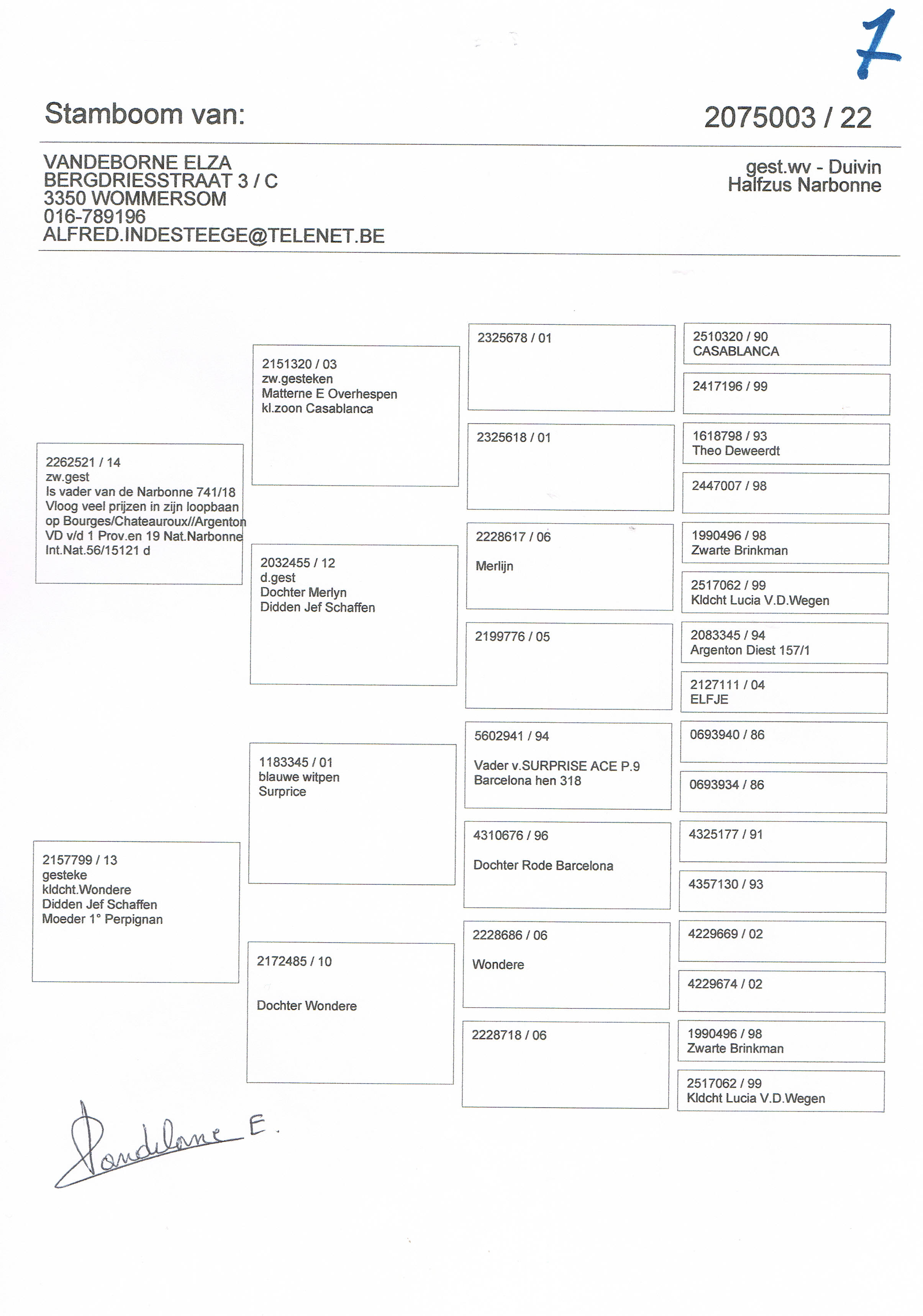 Vandeborne Liza 5003 (Indépendante de Liège (Vandeborne Elza)) Retour à la liste