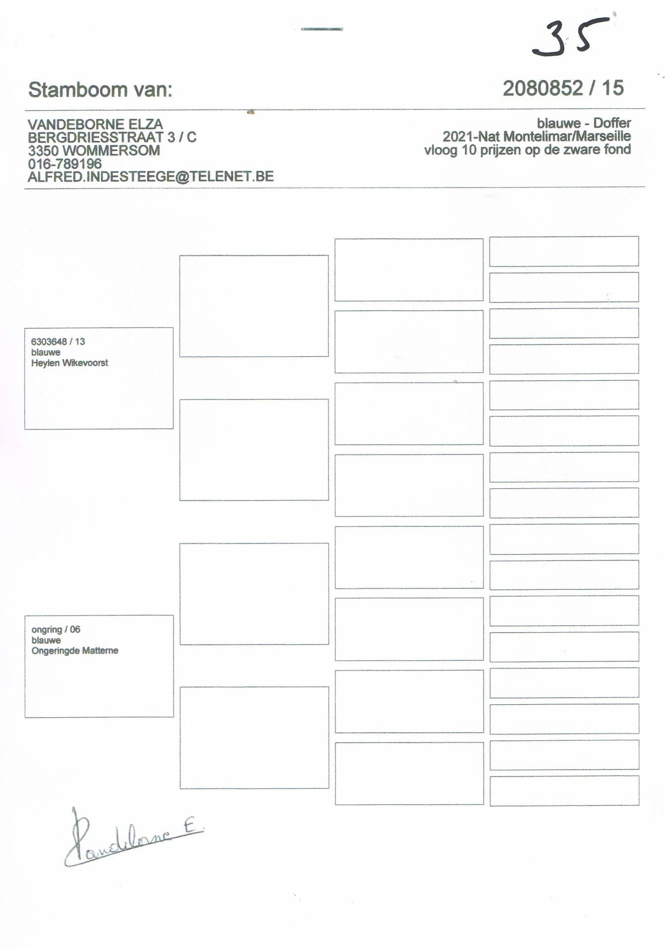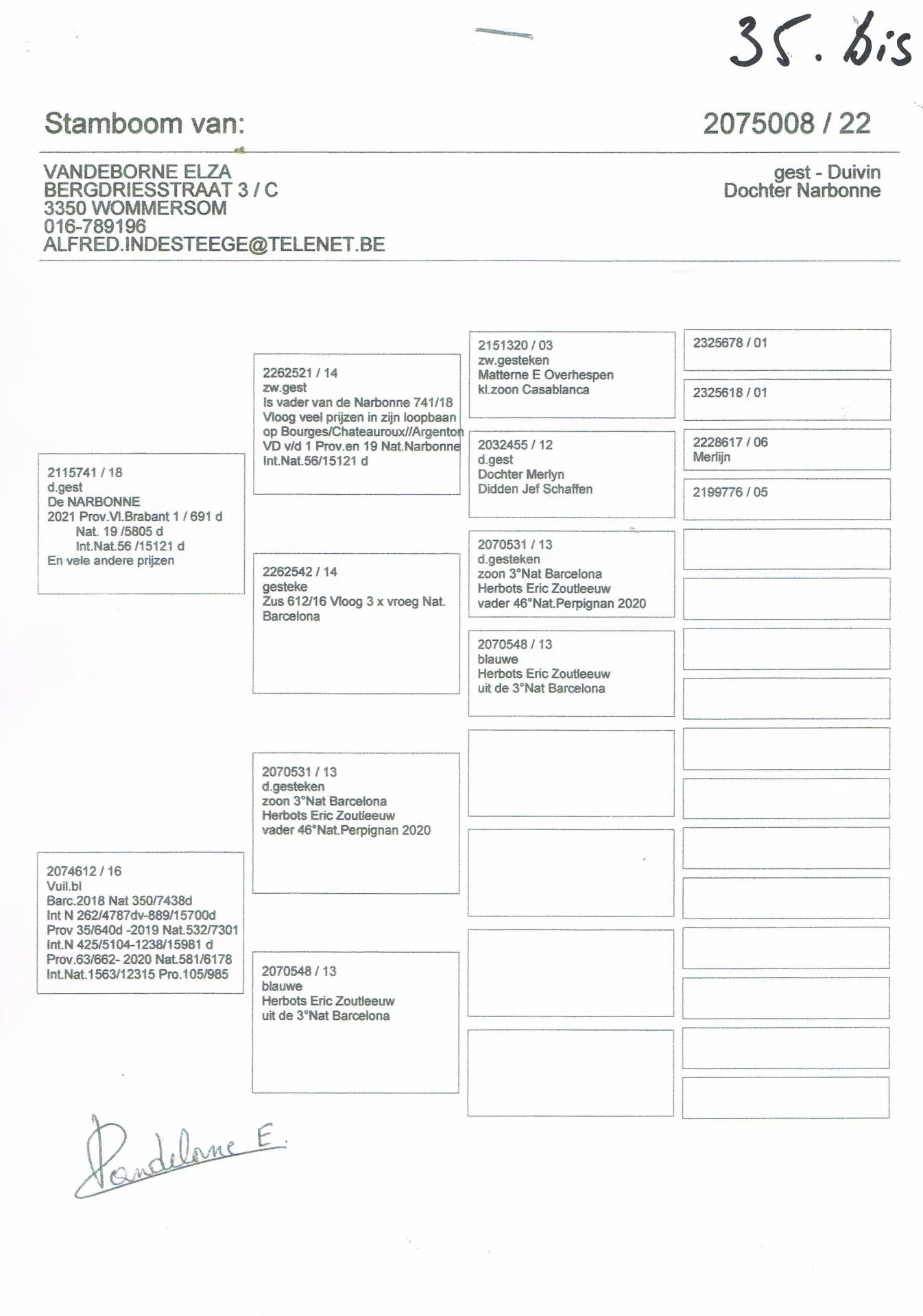 Vandeborne Elza – 2 pigeons présents – voir pédigrées