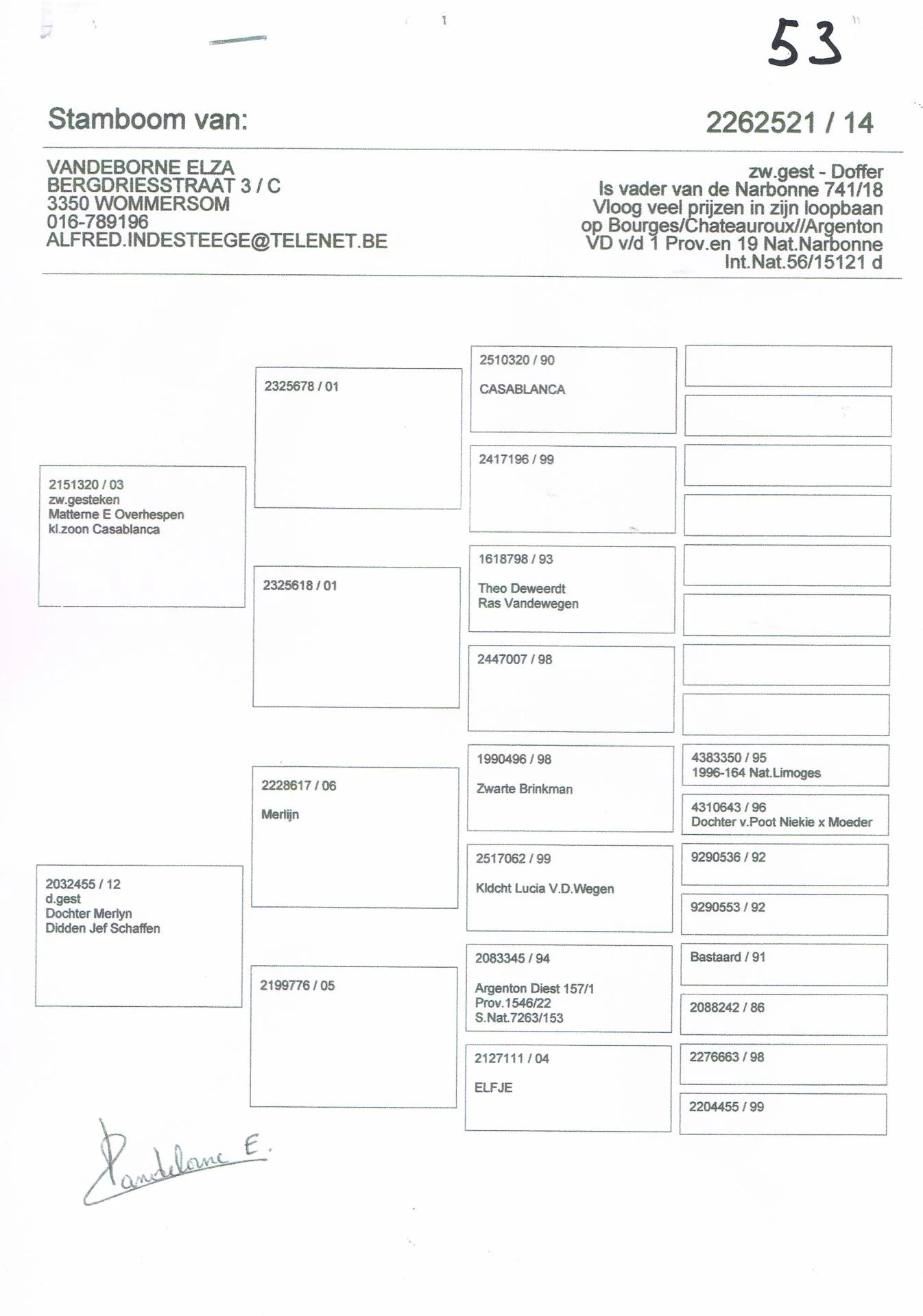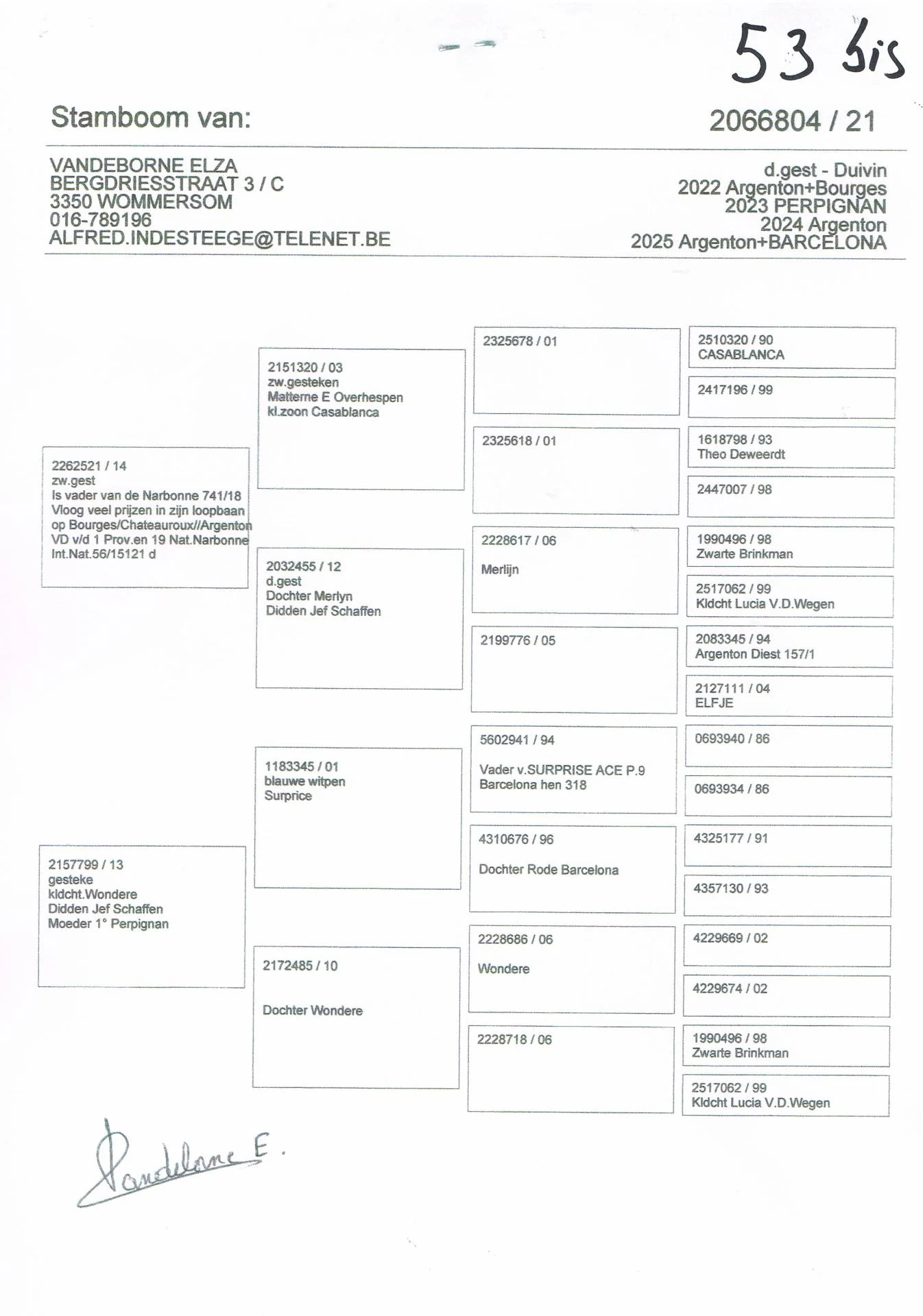 Vandeborne Elza – 2 pigeons présents – voir pédigrées