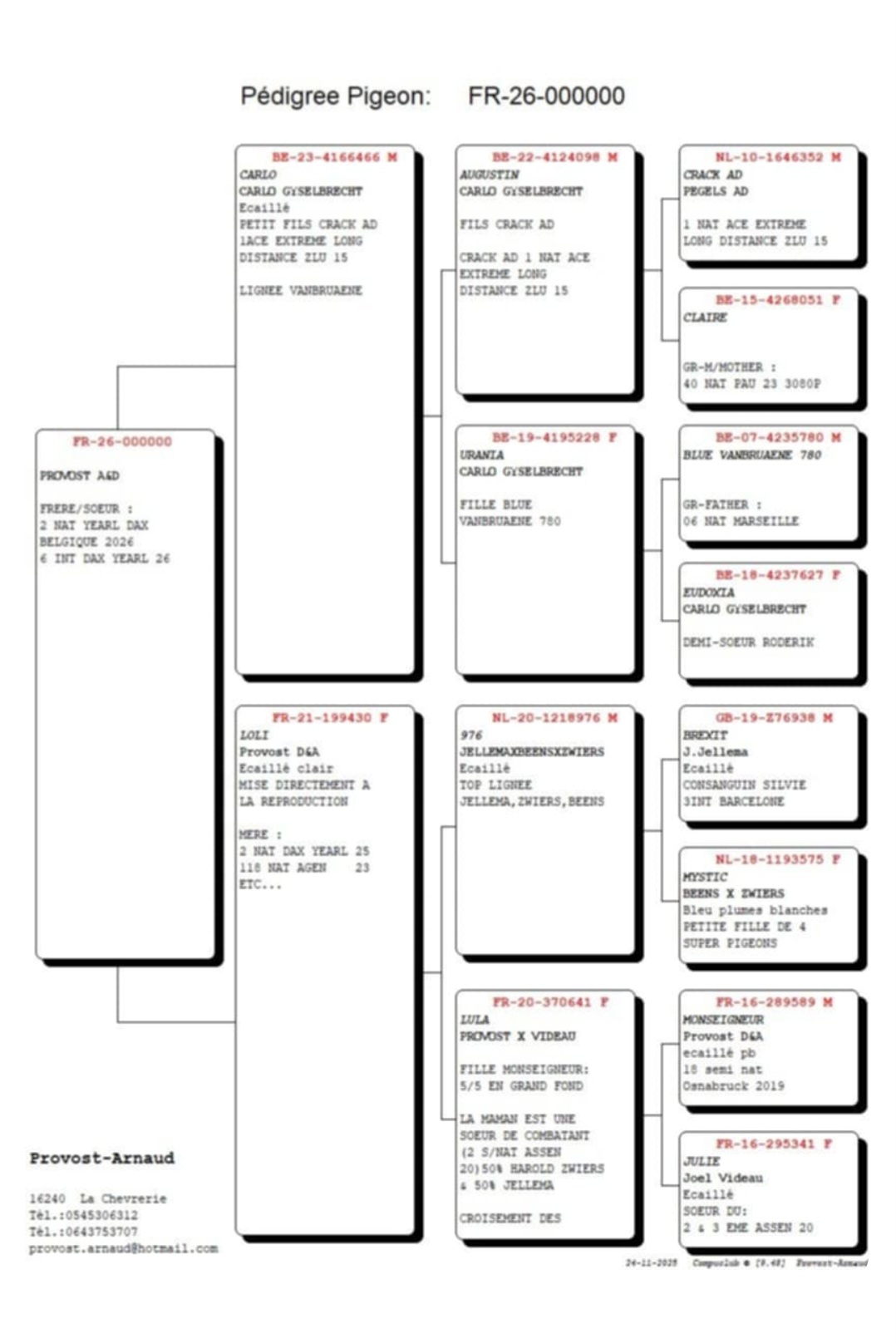 offrent un bon trés rare un pigeonneau 2026 Frère ou soeur du 2e National Dax 2025 chez Demaret Marichal de Herquegies |